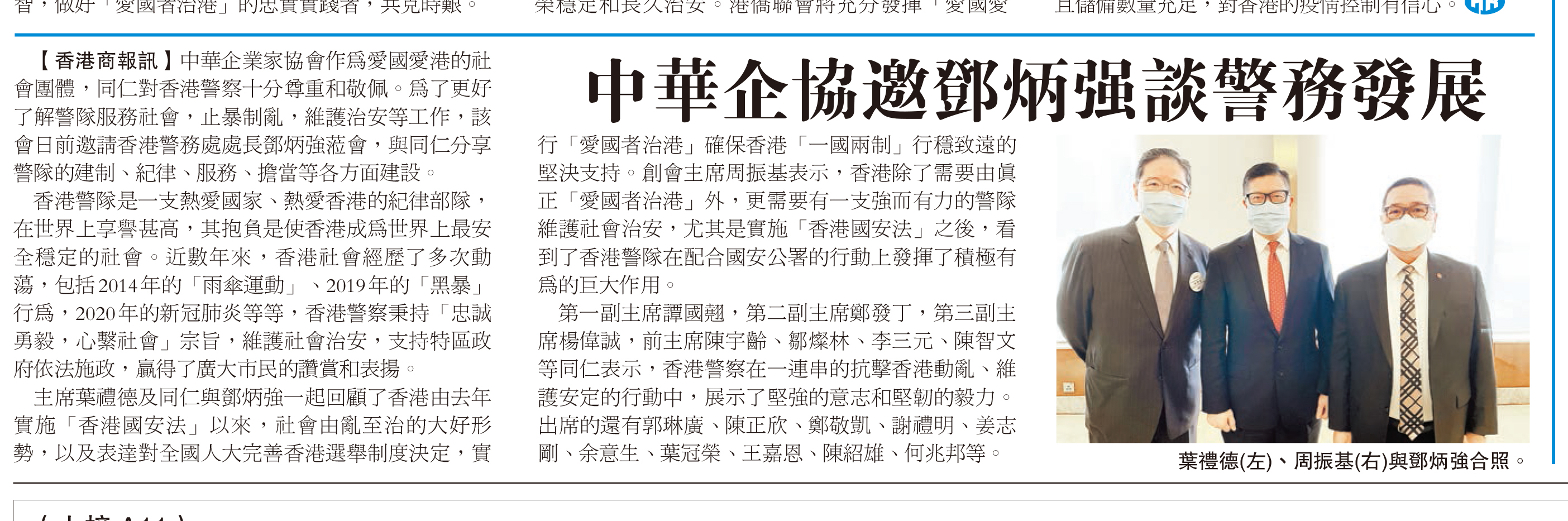 中華企協邀鄧炳強蒞會談香港警務發展 - 商報 2021.3.19
